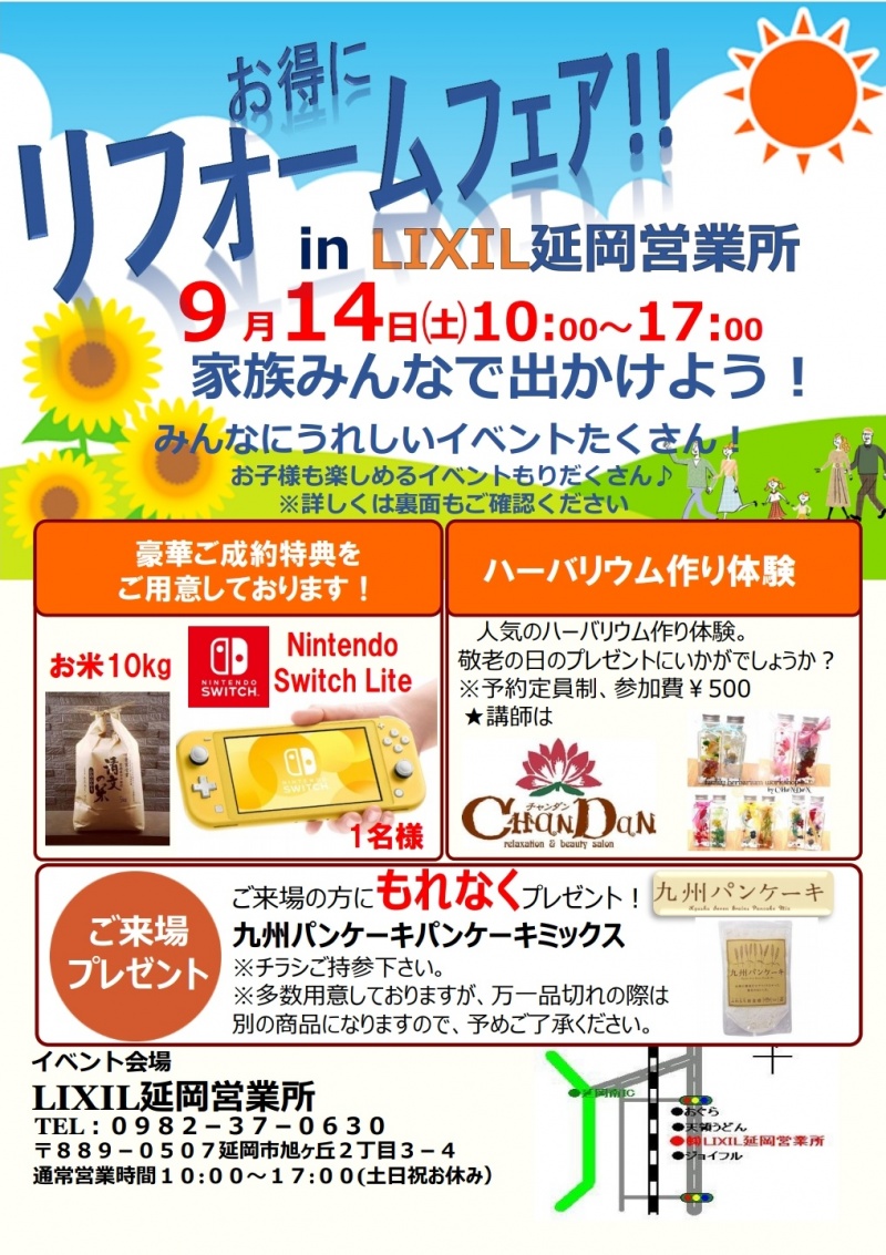 9月14日(土) お得にリフォームフェア開催!! 家族で遊びに来てください!!