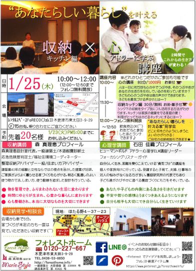 2018.1/25(木) 10:00〜12:00 フォレストホーム様 となりのレンタルスペース FoREKO(フォレコ)にて、...