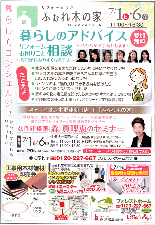 2018.7/1(日) 7/6(金) 11:00〜16:30 イオンタウン木更津朝日店1F・ふぉれ木の家にて、フォ...
