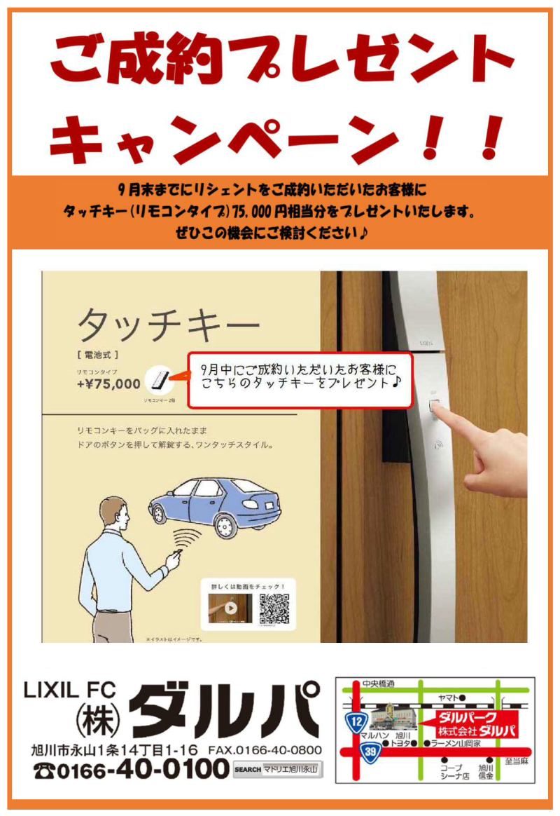 ☆リシェント玄関ドア☆タッチキープレゼントキャンペーン☆