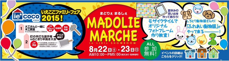いよいよ今週末! 「まどりえまるしぇサマーフェスタ2015inLIXILショールーム」 最新情報! ★今年の初企画! LIXILショールームに「ふれあ...