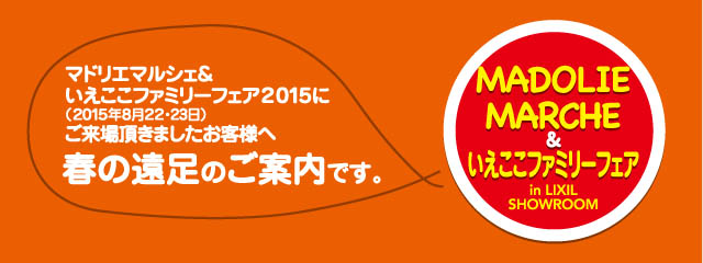 春の無料バスツアー!お申込み・詳細はこちらをご覧下さい! まどりえまるしぇ&いえここファミリーフェア 春の遠足編! 「LIXILリフォームフェア20...