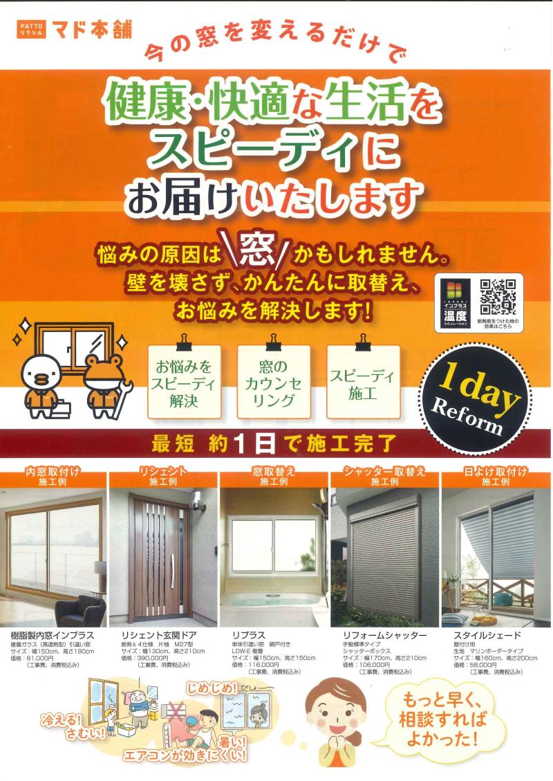 当日は,1日で工事完了できる既存の窓の内側に内窓を取り付ける工事から,壁を壊さずに新設の窓や玄関ドアをカバー工法で交換する工事などの商品を展示して,見...