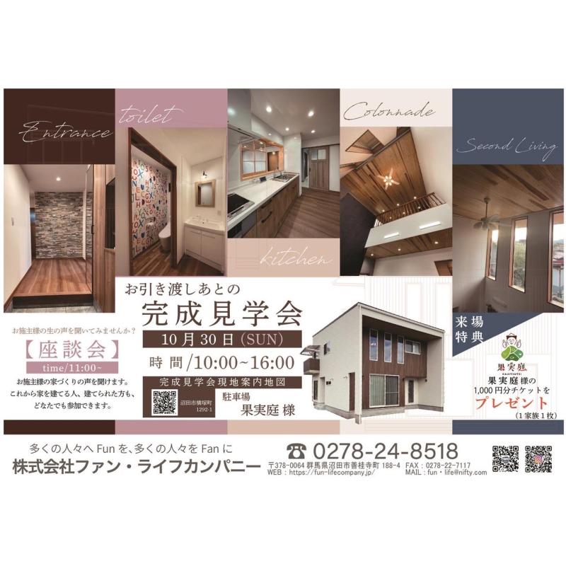 Fun・LifeCompany 新築 完成見学会のお知らせ🎪 日にち / 2022年10月30日(日) 時間 / 10:00~16:00 駐車場 /...