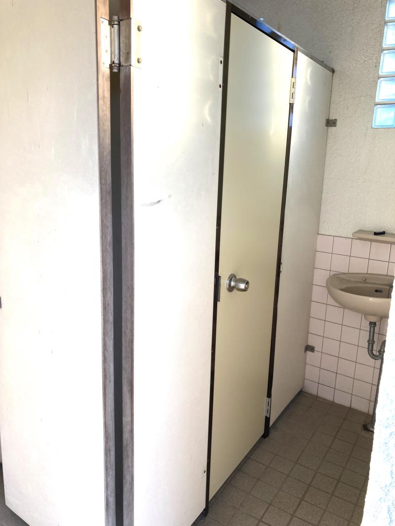 袋井市 トイレドア交換 運動公園のトイレのドアが故障で使用できず、 立ち入り禁止の状態でした 扉を直しました 施工後 施工前 当社においては ...