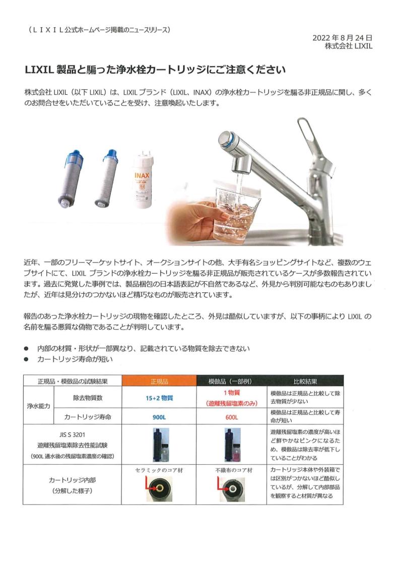 『浄水栓カートリッジの偽物注意!』