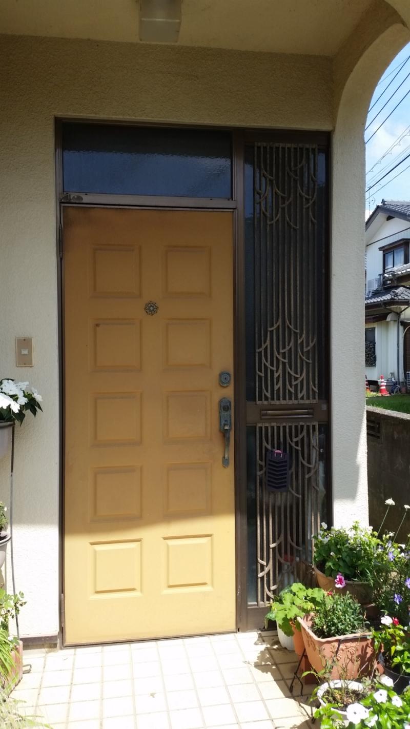 八街市U様邸で玄関ドアのリフォーム工事をさせていただきました。 施工前 築30年以上経ち、開閉が重くなり錆も出てきているの...