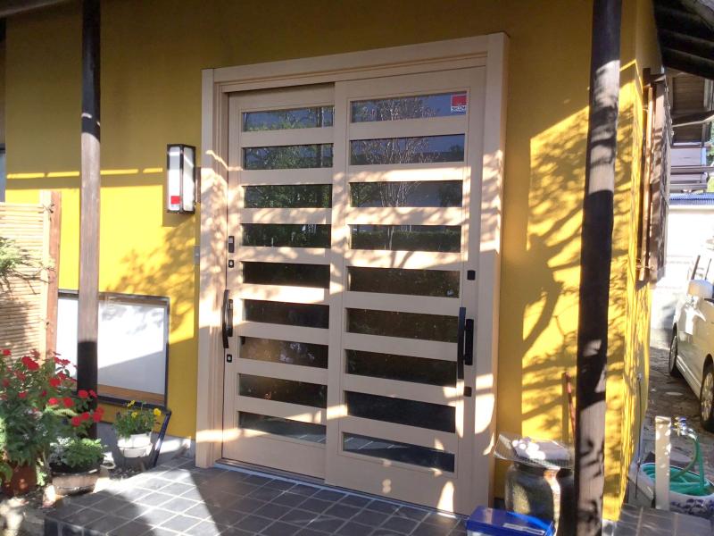 一般住宅の玄関を店舗用ガラス戸へ交換いたしました。