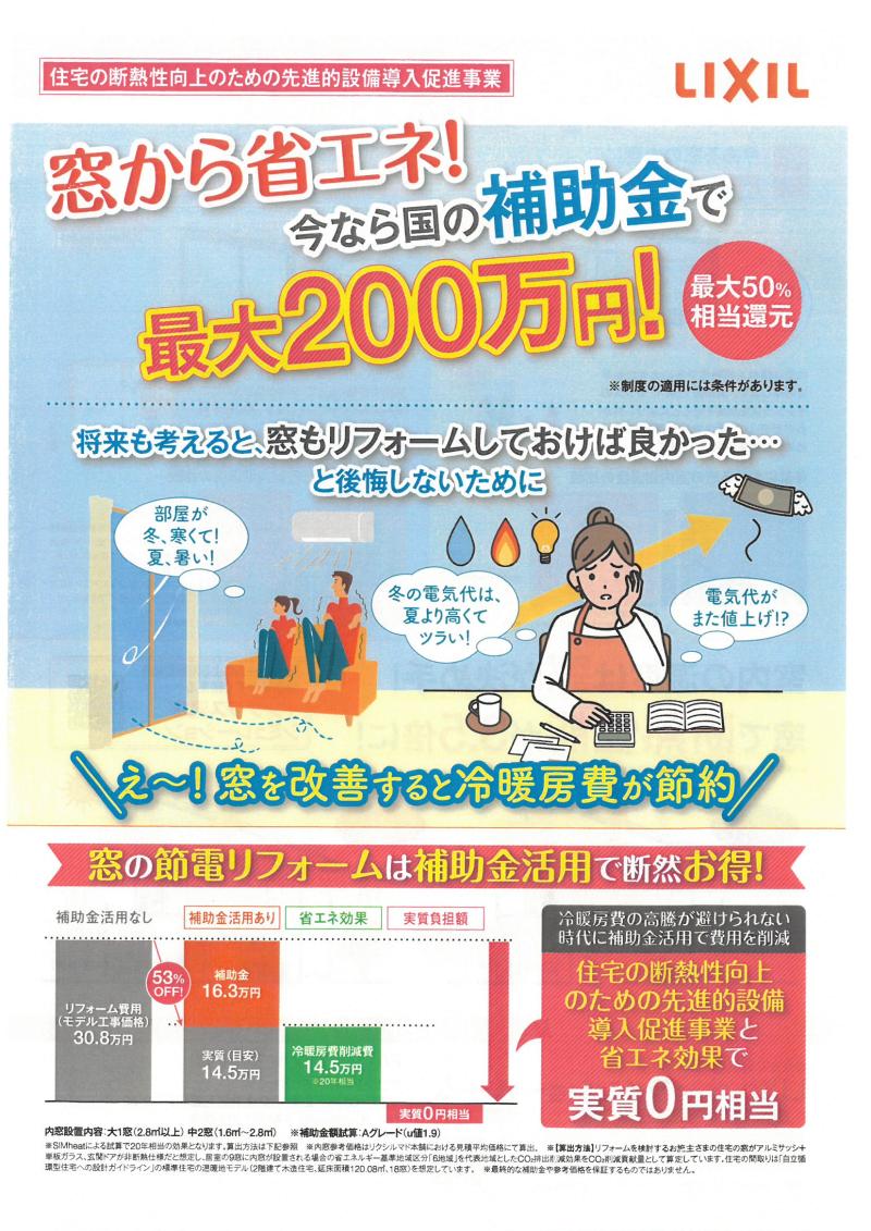 窓から省エネ!補助金のお知らせ
