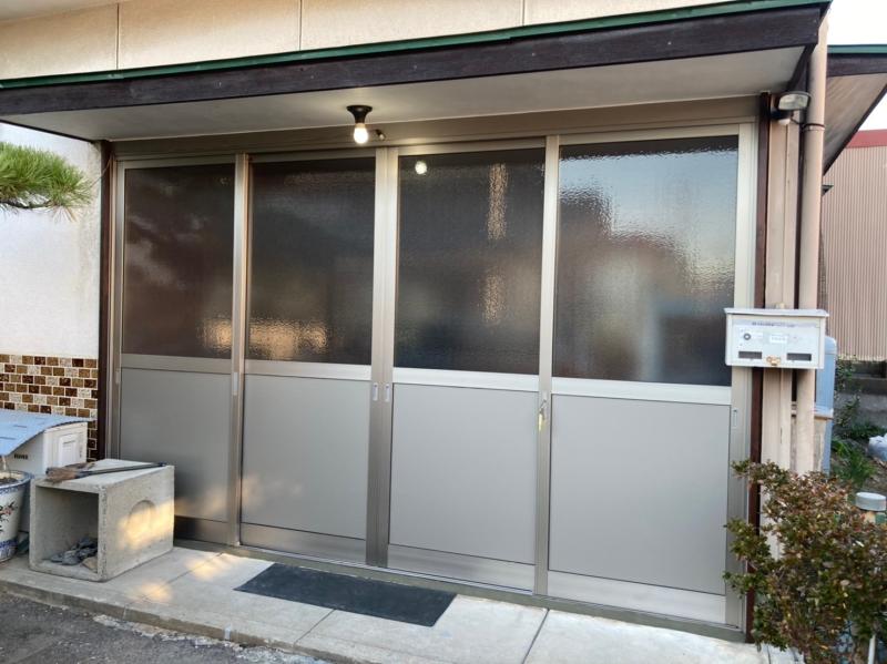 店舗入り口のレールの段差で車いすが入るのに大変難儀をされているとの事で取り換えの工事依頼を頂きました!店舗引き戸 内付け型 4枚引き戸 ランマなし 上...