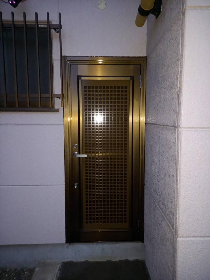 防犯効果を高める為にリシェント勝手口ドアを取付しました!! 格子はパンチングメタル、ガラス割れを防止する為にガラスではなくパネルを入れさせて頂きました...