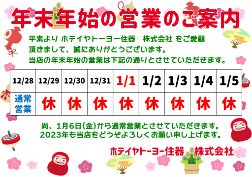 年末年始休業のお知らせです
