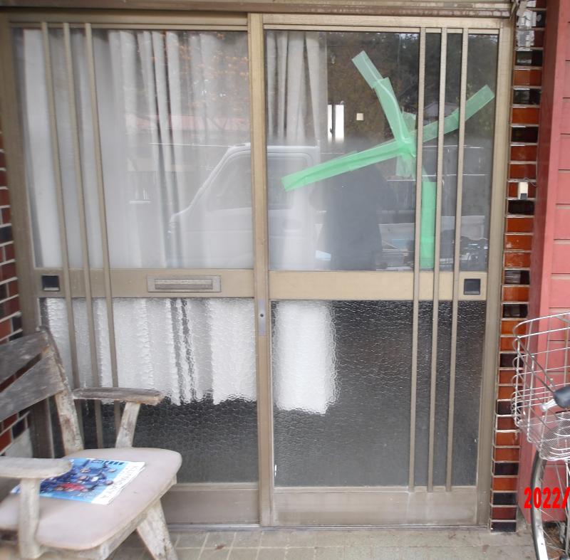 玄関引戸の昔のぼかしガラスの交換です 工事前 工事後 #大泉町 ガラス修理 玄関リフォーム #太田市 ガラス修理 玄関リフォーム