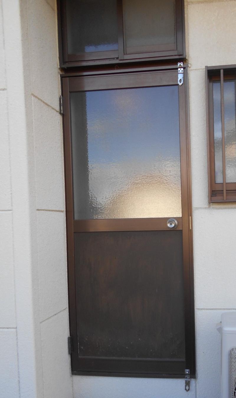 上半分ガラス戸の勝手口ドアを、ランマ下のみリシェント勝手口ドアに交換しました 施工前 施工後 #大泉町 勝手口リフォーム #太田市 勝手口リフォー...