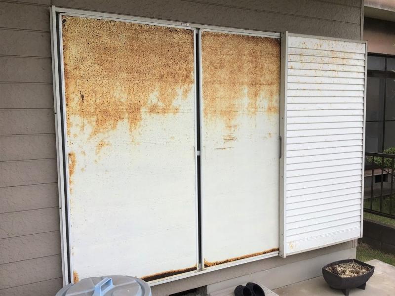 土間シャッターイタリヤ 最近、台風が心配なので、ここの掃き出しサッシに シャッターをつけられないかしらとのご相談です。 打ち合わせの結果、土間用シャッ...