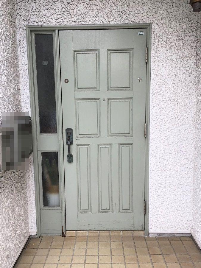 リフォーム玄関ドア リシェント3 木製のドアが入っているお宅です。年月が経って、ドアが傷んで いるのが気になっていたそうです。 外壁を塗りな...