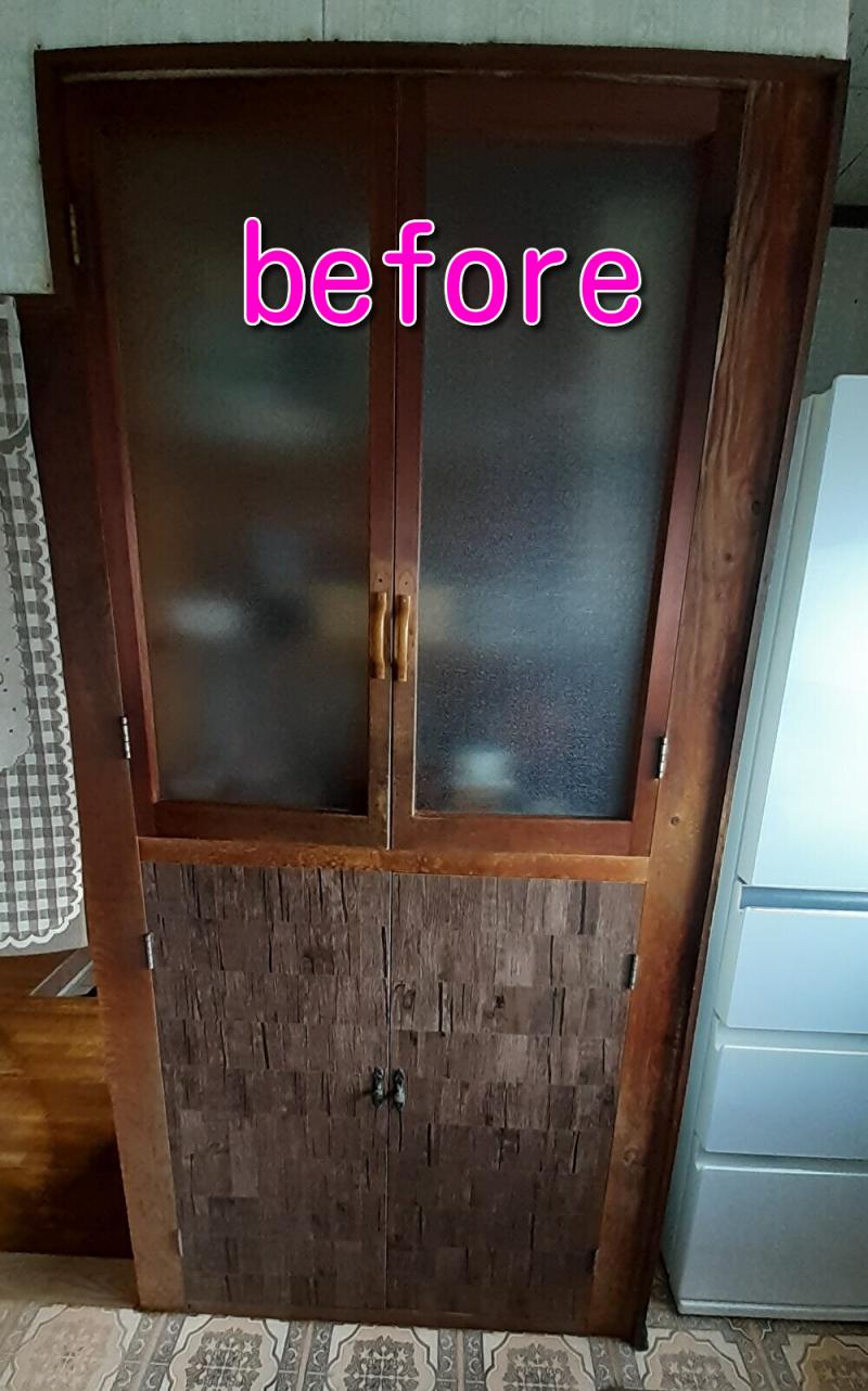 キッチンをお取替えのお客様🌼 食器棚も大変身しました! 丁番を替え、色を塗って、 下の部分にクロスを貼るだけの 簡単リフォーム🐼 これだけで、見た...