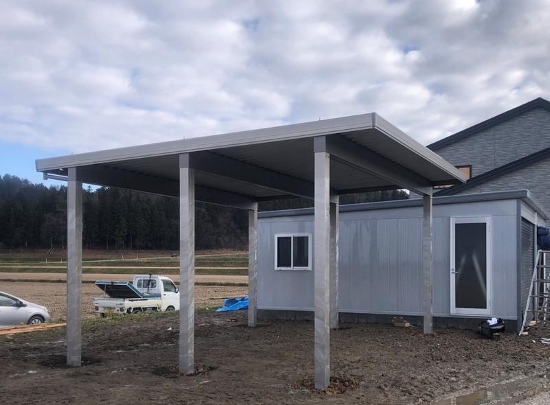 横手市内にお住まいを建設中のお客様より カーポートの施工のご依頼をいただきました。 土間コンクリート工事の前に施工しております。 大きなガレージも併せ...