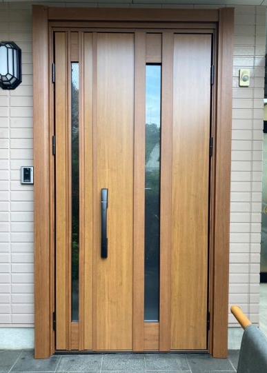 LIXILリシェント玄関引戸の施工例です。 明るい木目調にしてイメージを変えたい!とのご要望でSGタイプを選択されました。 家の入口が明るくなりとても...
