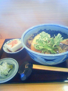 今日は昨日と違って、おいしい蕎麦です。 天ぷらそばを頼みました。 柚子胡椒が添えてあっていい香りでした。