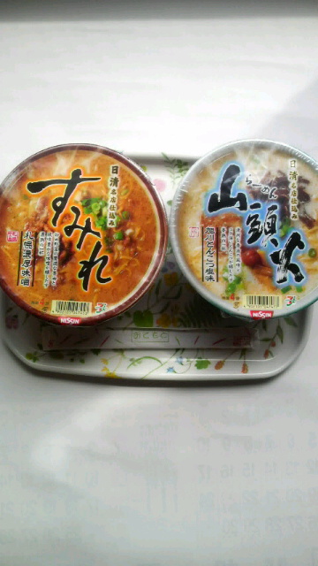今日の昼はお取り寄せカップラーメン セブンイレブンオリジナルの すみれと山頭火でやや 満足 KO