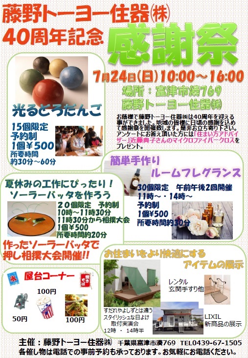 7月24日 明日 40周年感謝祭開催!!!