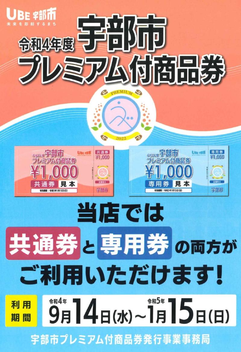 宇部市プレミアム付商品券利用可能☆【山口県宇部市】