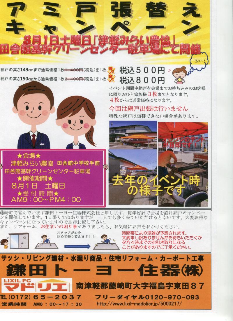 8月1日 網張替えキャンペ-ン 開催しま...