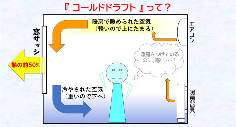 トリプルガラスへの窓交換で、コールドドラフト現象が軽減できます!