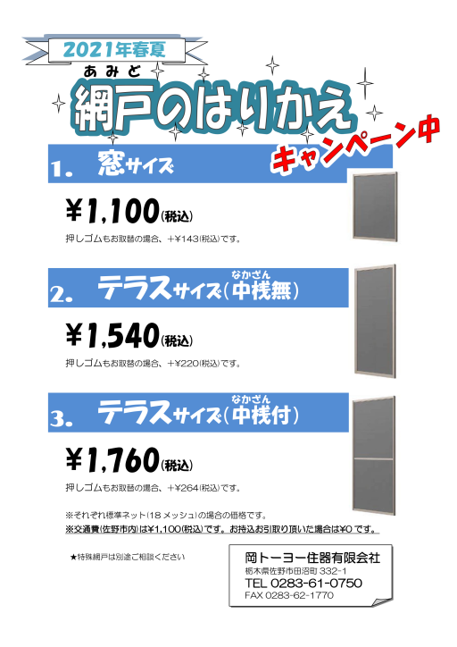 2021年 網戸の張替はお済ですか 夏のキャンペーン実施中
