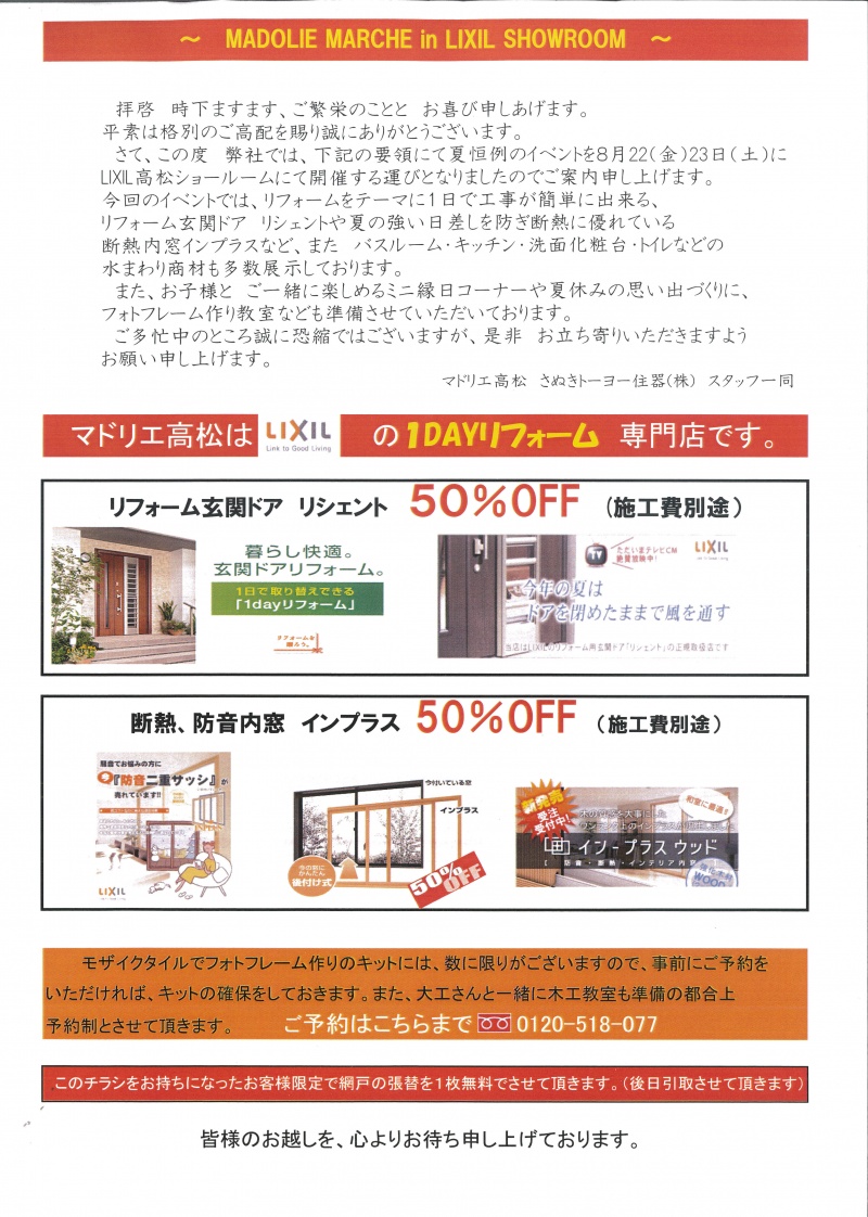 ☆お得なキャンペーンのご案内☆ 「まどり...