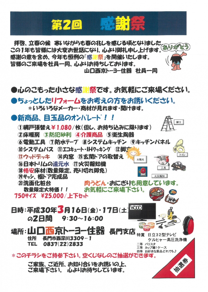 昨年は、山口西京トーヨー住器 長門支店と...