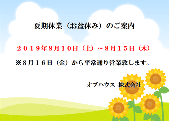 夏季休業のご案内