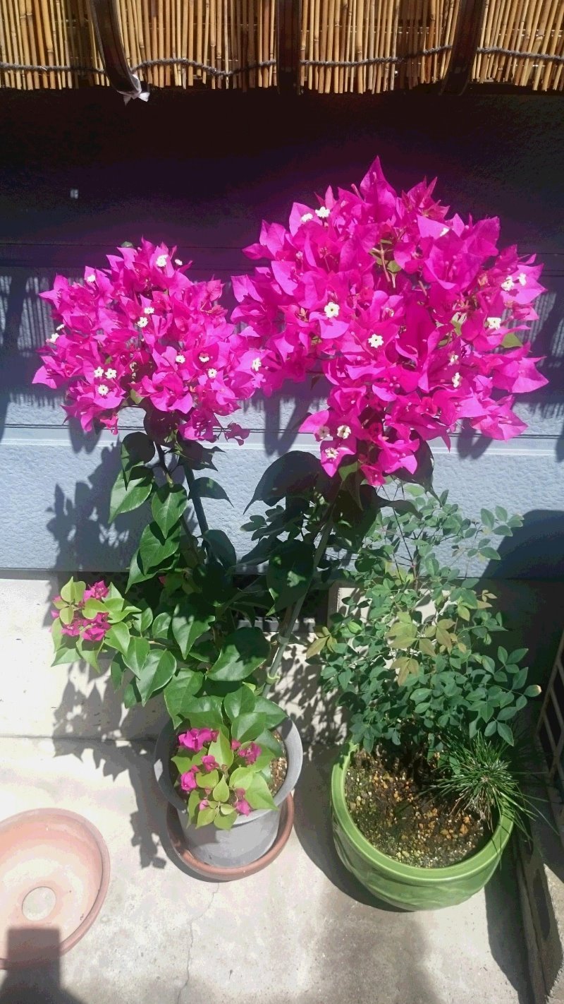 我が家のブーゲンビリアが咲きました!! 昨年購入して、寒い冬を乗り越えて今年はたくさんの花が咲きました。 鮮やかなピンクに白い花が...