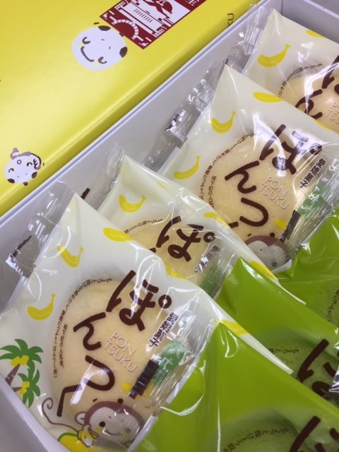M様より、北九州のお土産を いただきました 『 ぽんつく 』 おサルさんのイラストが愛嬌あり とても可愛らしいお菓子です ・カスタード ・バナナ ・抹...