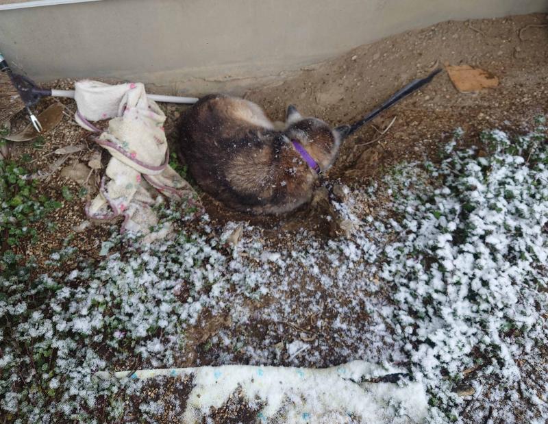 先日は大泉町も雪が降りました 病気中の犬、心配になって様子を見に来たらどこにもいない!? 焦って捜したら、玄関前に自分で掘った穴倉にいました 色も相ま...