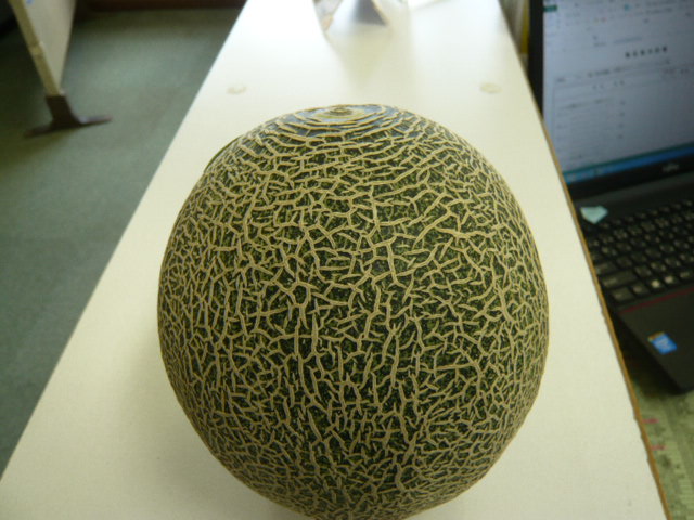 メロンをいただきました。 とってもおいしそう!!ですがまだ食べ頃ではないです おあずけ状態です。 早く美味しくな〜れ