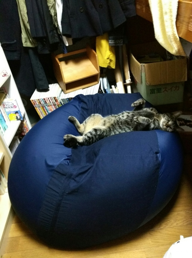 長女に熱望され、パウダービーズ入りの巨大クッション、いわゆる「人をダメにするクッション」を買ってあげたんですが、家具屋から届いたそばから本人より先に猫...