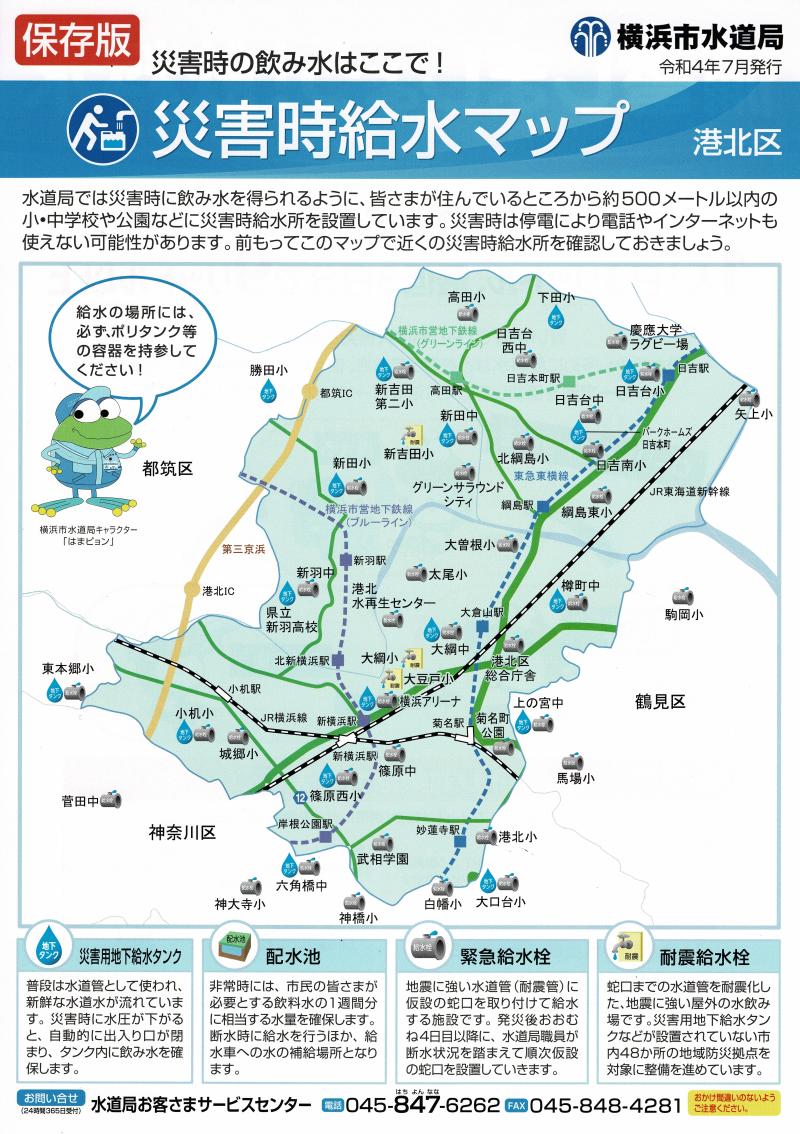 災害時給水マップ 港北区の災害時の給水マップをいただきました。 ←クリックで拡大します ←クリックで拡大します 水は大切ですか...