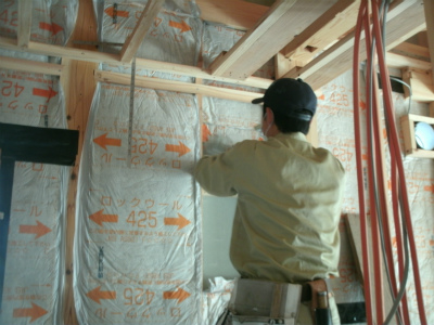 サッシの打ち合わせに小池創建さまの現場に伺いました。 ふと大工さんをみると断熱材ロックウールを壁に入れていたのです。 見てるとほんと隙間なく天井のうえ...