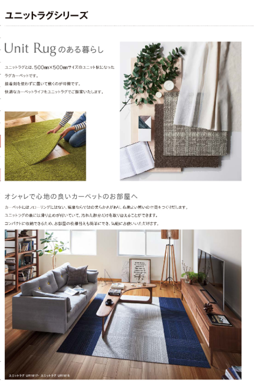 LIXILの『ユニットラグシリーズ』 KAWASHIMA SELKON ユニットラグのある暮らし ユニットラグとは500mm×500mmサ...