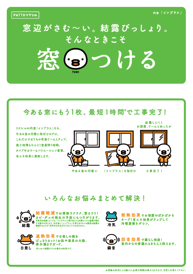 1DAYリフォームLIXILの内窓『インプラス』であったかリフォーム