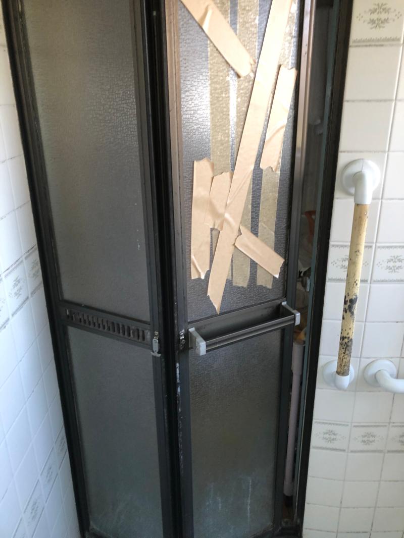 広海クラシオのHKです。 壊れた浴室折れ戸。 アタッチメント工法での取り替え工事。 ◆施工前 ◇施工後