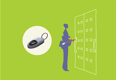 エントリーシステム システムキー[AC100V式] ドアに近づくだけでラクラク解錠できます。 タッチ/ノータッチの切替も可能です。 ...