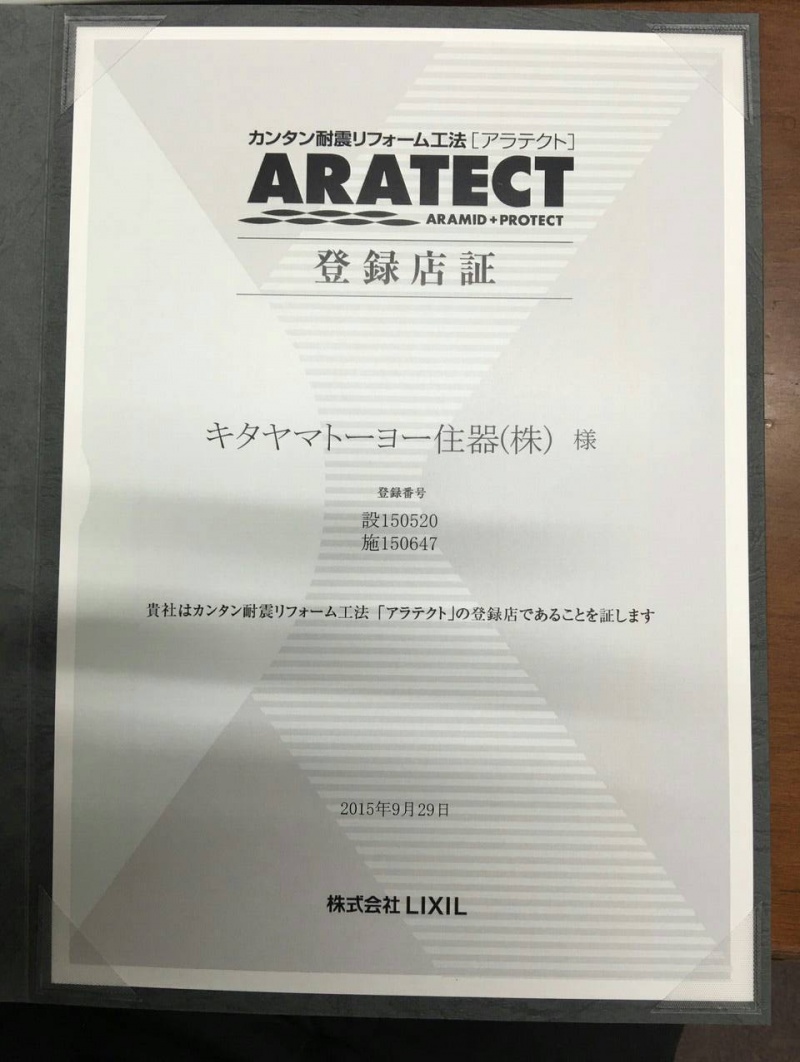 アラテクトの登録店に認定されました!!