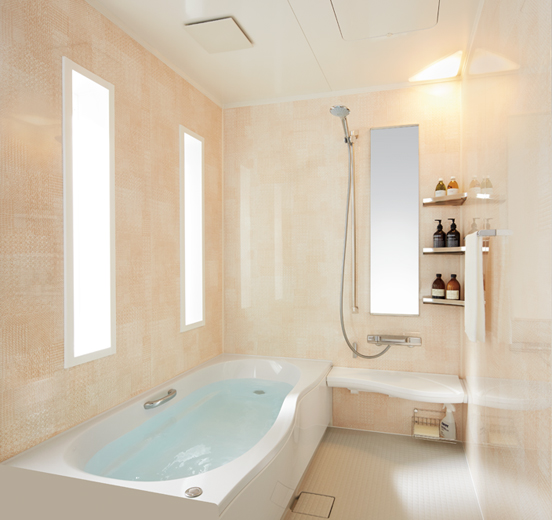 システムバスルーム アライズ リクシルのシステムバスルームアライズは、入浴時の快適を追及するだけでなく、 毎日のお掃除のストレスを軽くする工夫がい...