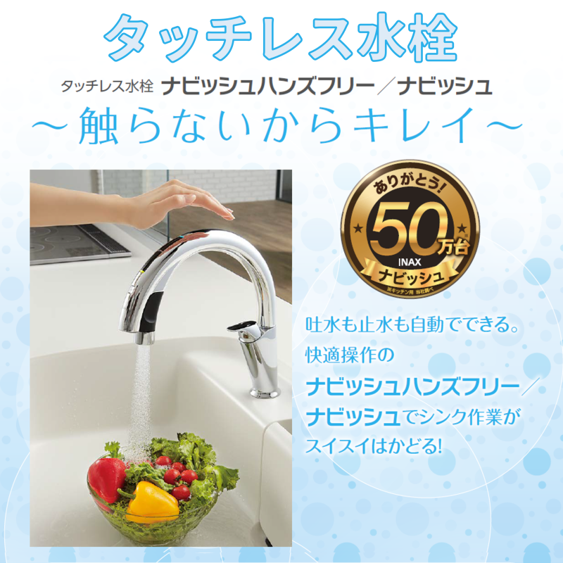 タッチレス水栓「ナビッシュハンズフリー」 清潔で節水もできるので家計にも地球にもエコロジー [自動センサー] 自動センサーのON/OFFはスイッチで切...