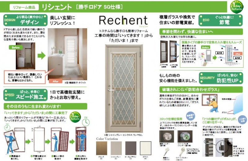 大好評リシェント! 家の入口は、玄関ドア・引戸・勝手口ドアなどいろいろあります。リフォームトドア リシェントは玄関ドア・玄関引戸・勝手口ドア等、品揃え...