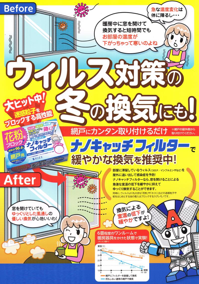 玄関用 ナノキャッチアミド 玄関換気にアミド。 という商品もあります 興味を持たれた方がいらしゃいましたらメール、もしくは電話にて 連絡をいただけれ...