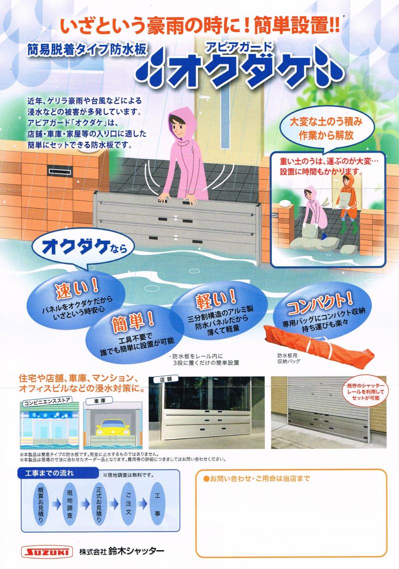 オクダケ 防水板です かなり前から売り出されてますが最近また浸水被害が多くなっていますので 興味があったらお問い合わせください よろしくお願いいたしま...